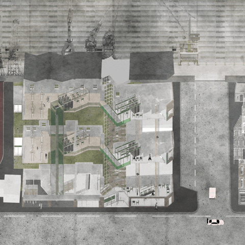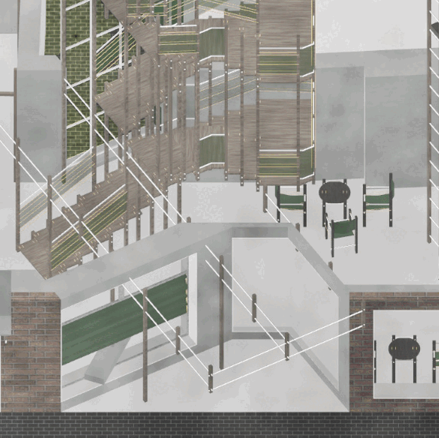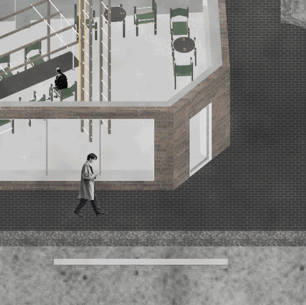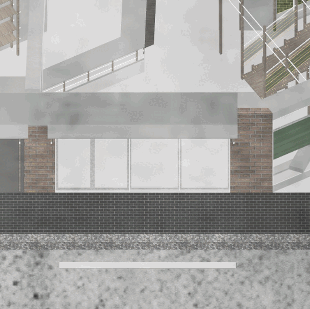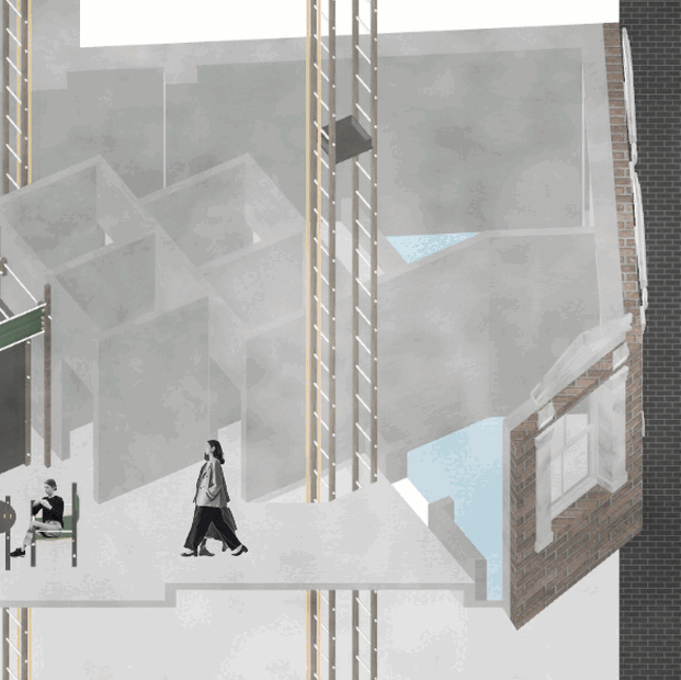 To respond to this gap, the design uses soft, movable modules based on elastic connection logic.Instead of breaking boundaries, the space gently adjusts them—making them flexible and shared.Three main design moves—opening the facade, adding vertical voids, and removing internal walls—help create a dynamic space where people can meet naturally.