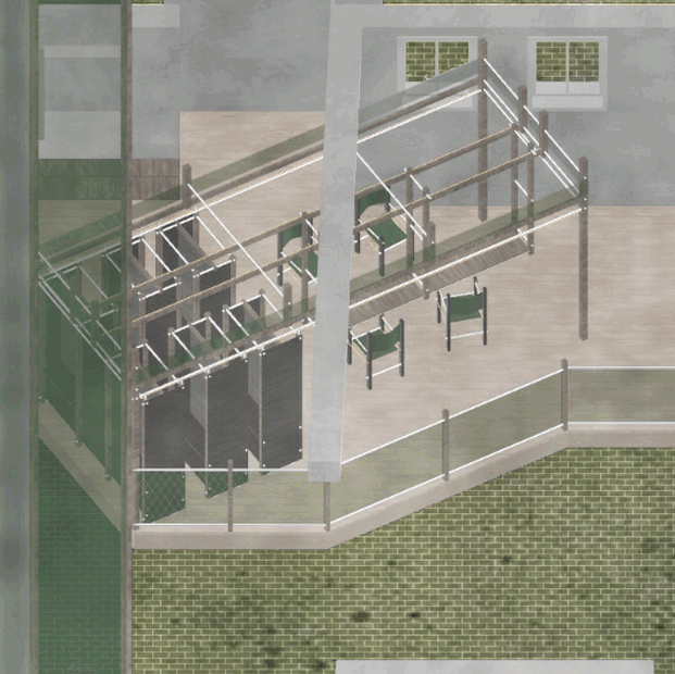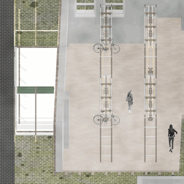 Located next to the Earl’s Court construction site in London, this project creates a flexible station for cyclists, construction workers, and the public.Many construction workers—often migrants—remain socially and physically separated from the communities they build.